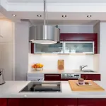 Les extras comprennent un réfrigérateur et un four dans une cuisine complète. Des équipements de cuisine tels qu'une cafetière/théière sont fournis pour offrir aux clients une expérience pratique.